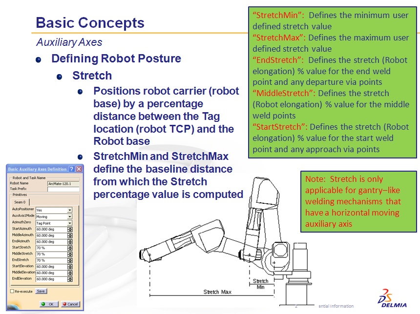 Stretch is a horizontal measurement (parallel to x-y plane) between the robot base and TCP (at each tag point). Only useful when you have a Y track axis that can move the robot base closer or further from the work piece. So you can think of it as the horizontal placement of the robot base in proximity to each tag point.