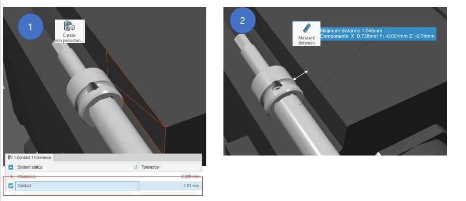 1 when using the Create non Persistency feature, the Clash Check result showed a contact result.