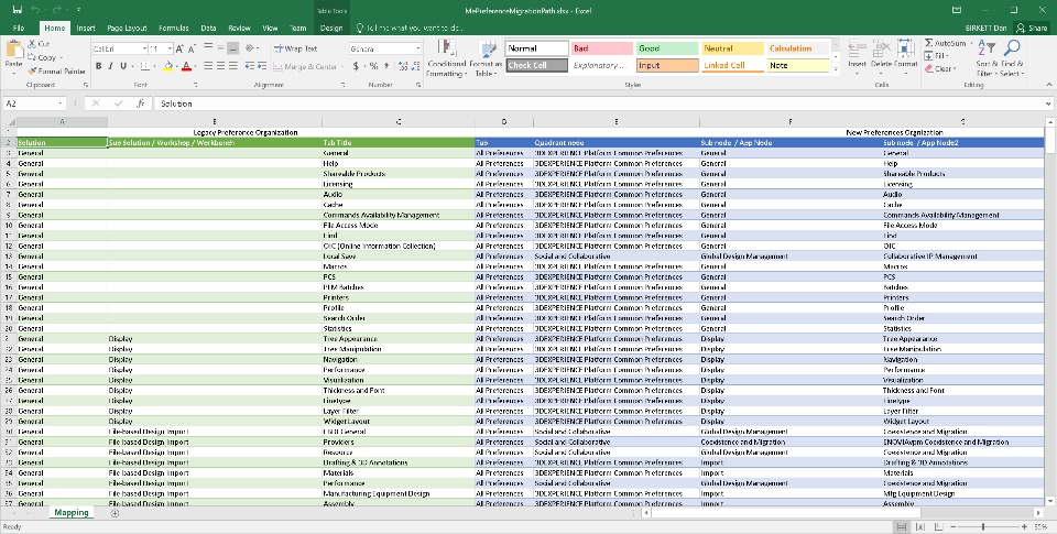 2. Use the MePreferenceMigrationPath.xlsx (located in the ../win_b64/resources/doc folder) to cross-reference the legacy Preference with the new Preference you are looking for