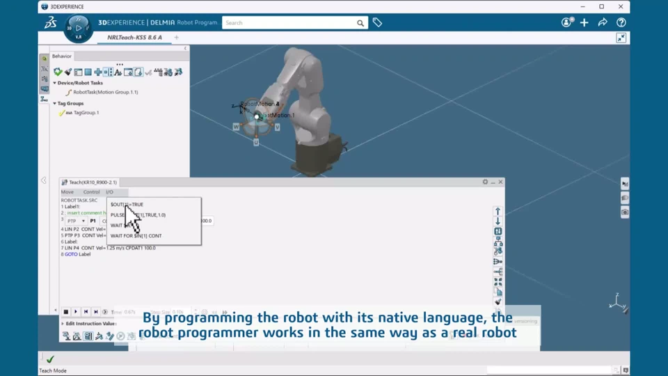 - Save time programming KUKA robots by utilizing the NRL teach to directly program the robot in its native language.