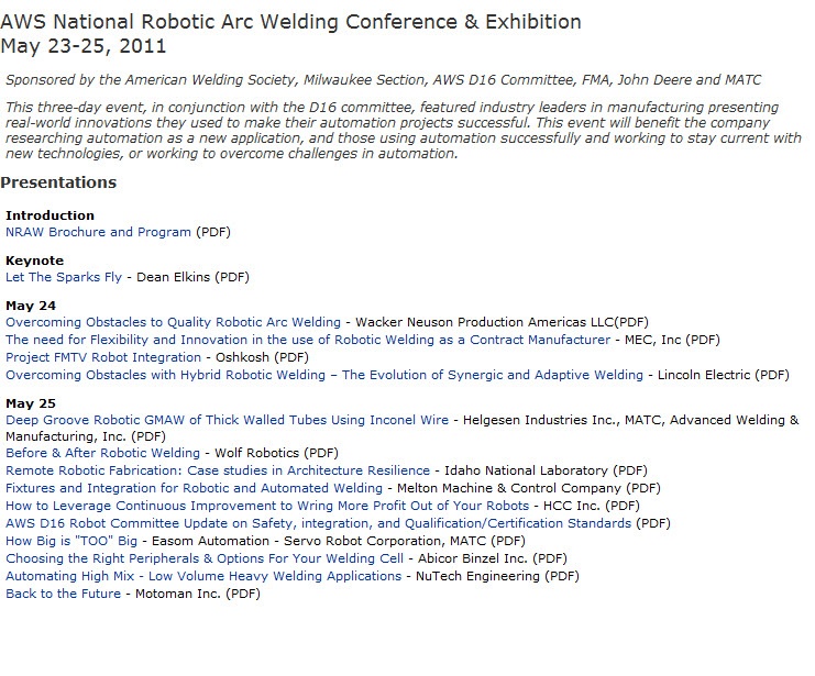 An interesting 3-day conference and exhibition was held recently by American welding soceity (AWS) on May 23-25, 2011
