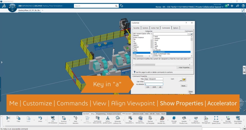 If you use hotkeys, you can manipulate viewpoints more easily when you define or review 3D layout.