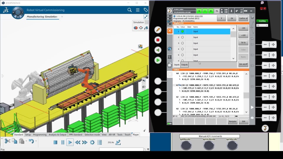 - Step4: Kuka VRC (Virtual Robot Controler) connected to DELMIA using RRS2 interface, to ensure a realistic simulation.
