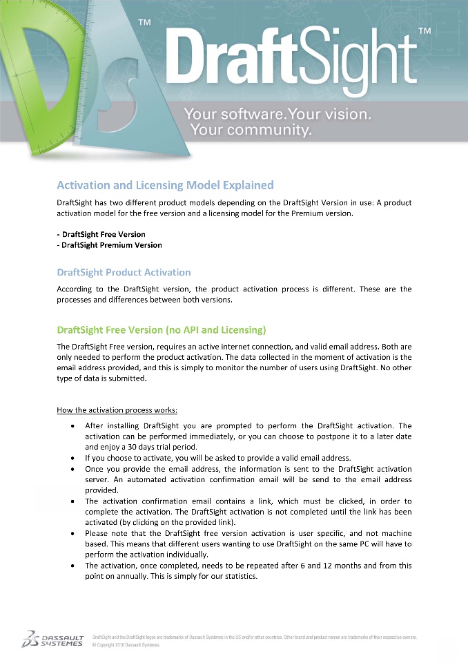 The DraftSight (Product) activation/ licensing has two models, depending on which DraftSight version is in use: