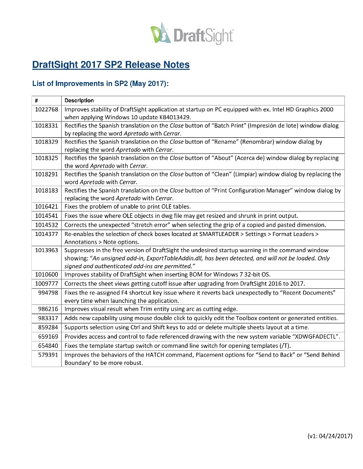 May 2017: DraftSight 2017 SP2 is now available!