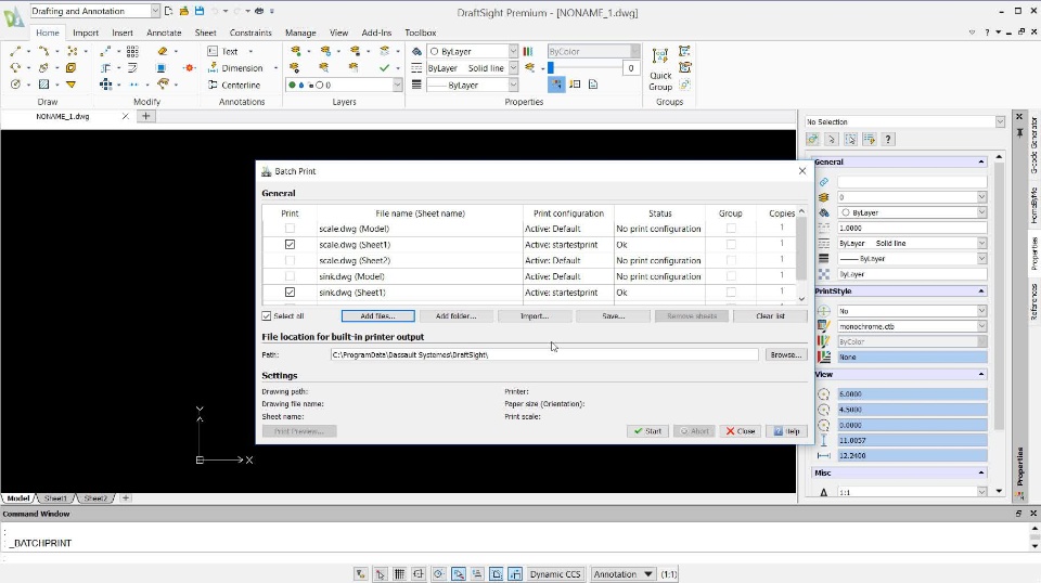 Lastly, once you've chosen whether or not you want to save your Batch Print list, a bubble will appear in the lower right-hand corner of your DraftSight Professional application - indicating that your print is in progress. When it's finished, the bubble will update to say that your Batch Print is complete.