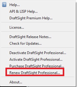 If you do not select this option, you can also use the “Renew DraftSight Professional” option that is available in the DraftSight Help menu: