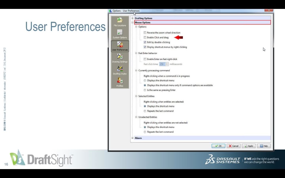 This webinar will review some important DraftSight settings which can be controlled through Tools > Options.