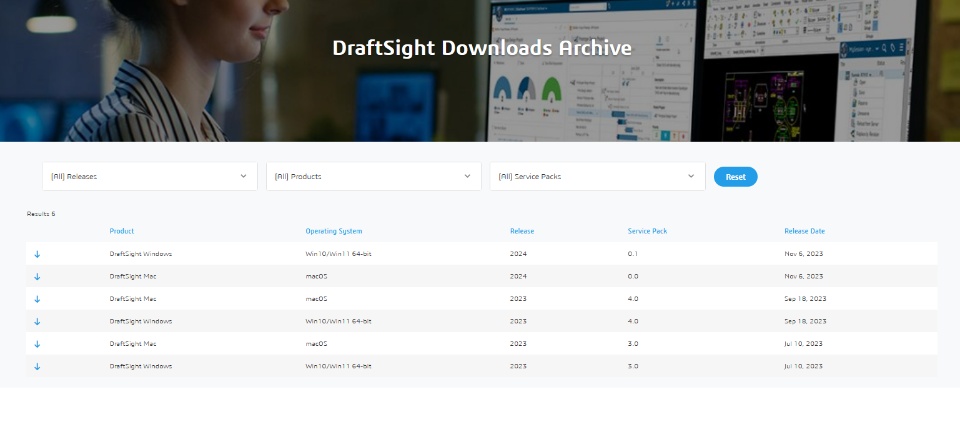 Download of the older versions of DraftSight has become easier now.