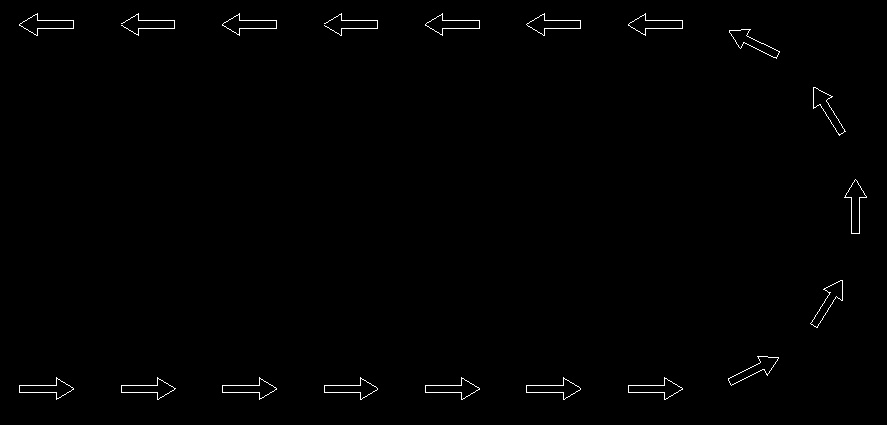 So let’s say for example, that the Polyline marks an evacuation path on a building in a construction project, and the Block is meant to show the direction of the path. (I will use aprox measures).