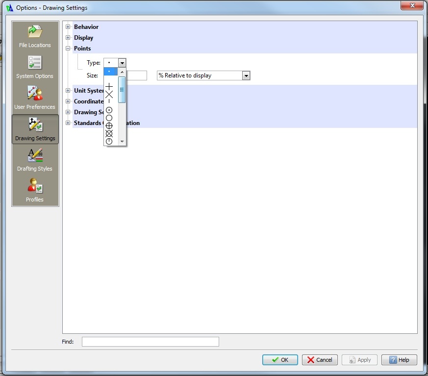 - Click the Drawing Settings Tab, and Expand the Points node.
