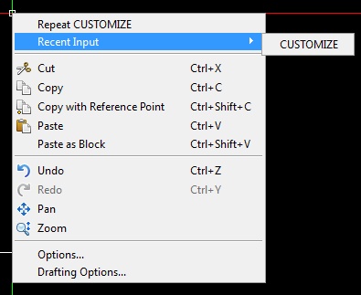The Command Menu displays if you right-click when a command is active and no shortcut menu is defined for that command.