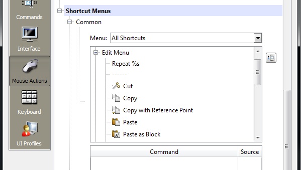 3- Expand Shortcut Menus > Common or Contextual.
