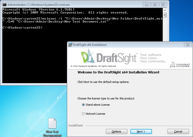 A verbose log is a logging method which records and tracks all changes and settings applied to a machine at the time of an installation. Verbose logging, which comes from the term verbose meaning, “expressed in more words than necessary,” logs a lot of useful information that can be used for troubleshooting purposes. If you are running into issues installing DraftSight, use the methods described below to create a verbose log of the installation while tracking visible or latent issues. Furthermore, use the methods described below to submit a verbose log of the installation to a technical support engineer whenever requested.