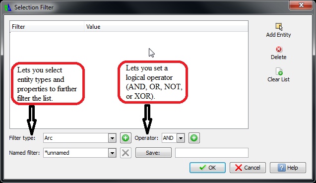 And see only Arc has been selected. You can save this filter using ‘Save’ tab in Selection Filter dialog box for future use.