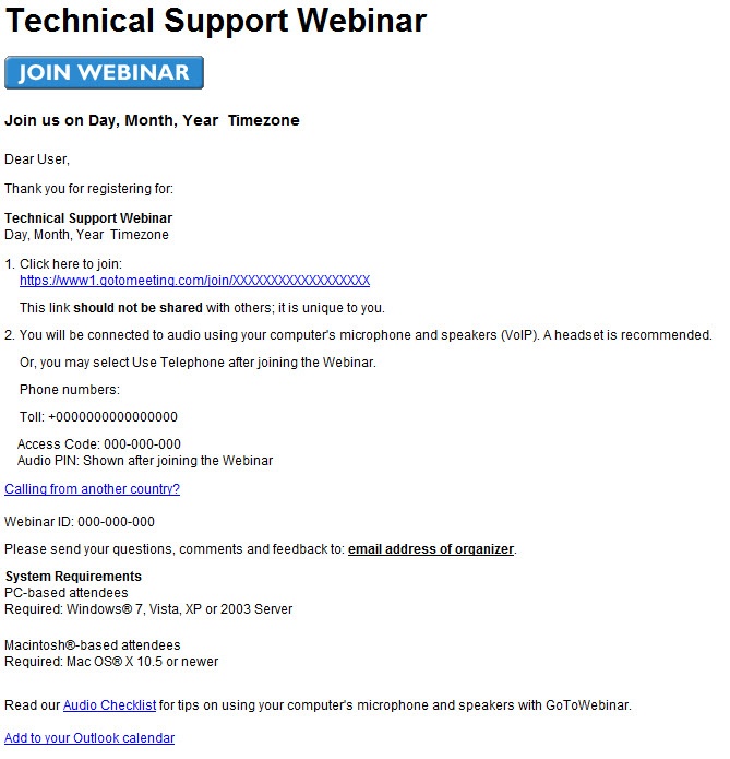 After registering you will get a confirmation email which you should keep handy because you'll need the information it provides at the time of the webinar.