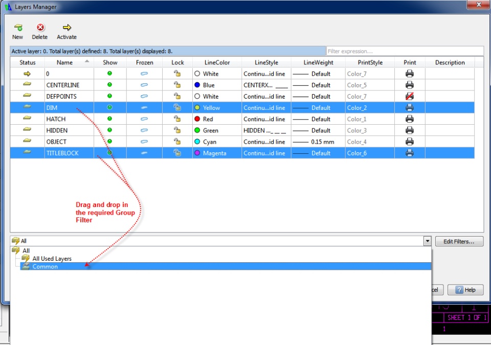 In a drawing, if there are lots of layers, it becomes difficult to work with all of them at a time. Hence, filter is the best way to group them. It allows to view only required layers at a time. This can be achieved as following: