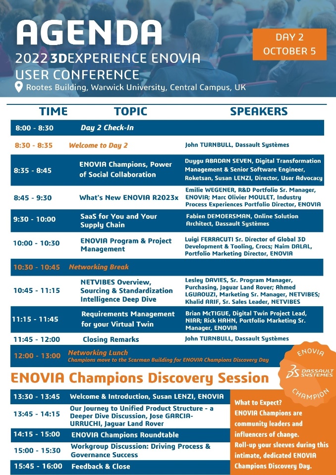 After a day full of powerful and insightful talks and discussions, we are more than ready to kick off the 3DEXPERIENCE ENOVIA User Conference, day 2!