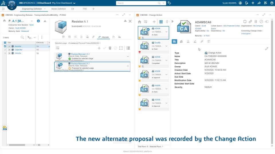 To quickly add an Alternate Item to a Change Action, you can use the new option (available in R2021x FD05) to link the item to an existing Change Action: