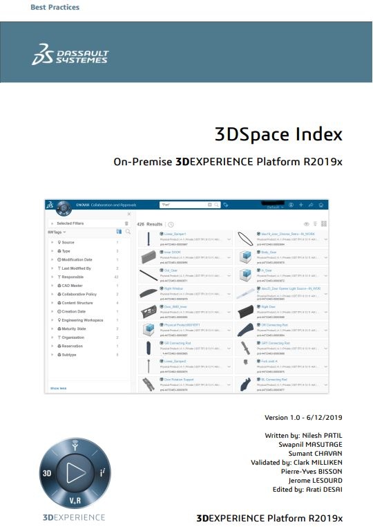 This document delivers the 3DSpace Index Best Practices for its installation, configuration, run & monitoring, and troubleshooting. Document also includes the best practices for the 3D Index Server component.