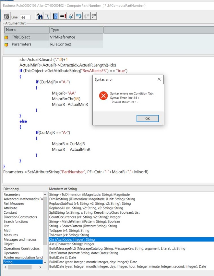 MyString = Chr(65) should assign "A", but get "Invalid Structure", see attached. What is wrong with my syntax ??