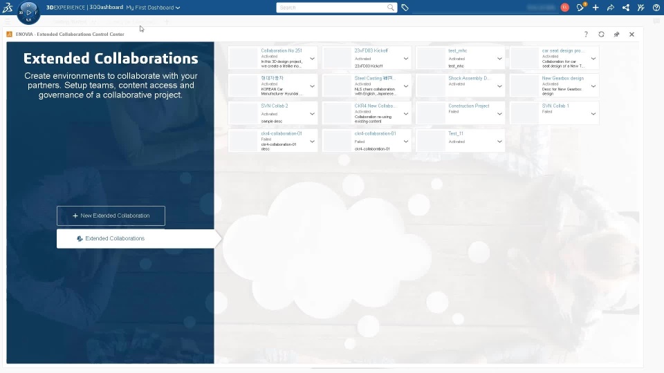 Governance - 3DEXPERIENCE services initialized at Collaboration creation. Participant gain access to these applications once they have been invited into a Extended Collaboration.