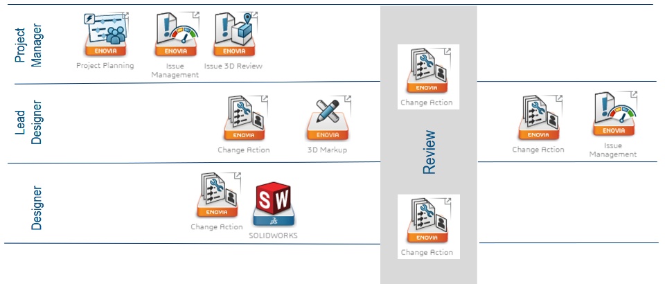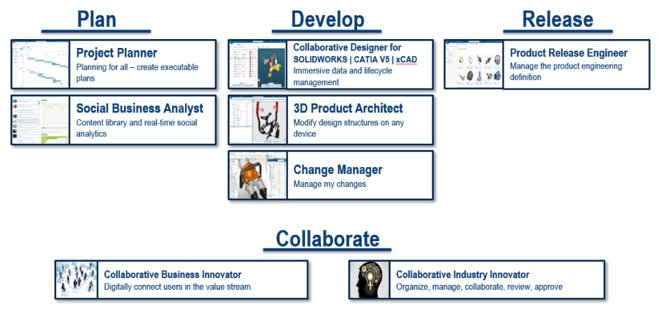 In short, ENOVIAworks is a collection of cloud-based roles that provides essential functionality for teams to more efficiently (and repeatedly) Plan, Develop and Release new products. These processes are all connected through two core roles, Collaborative Business Innovator and Collaborative Industry Innovator – which are the gateway to the 3DEXPERIENCE platform.