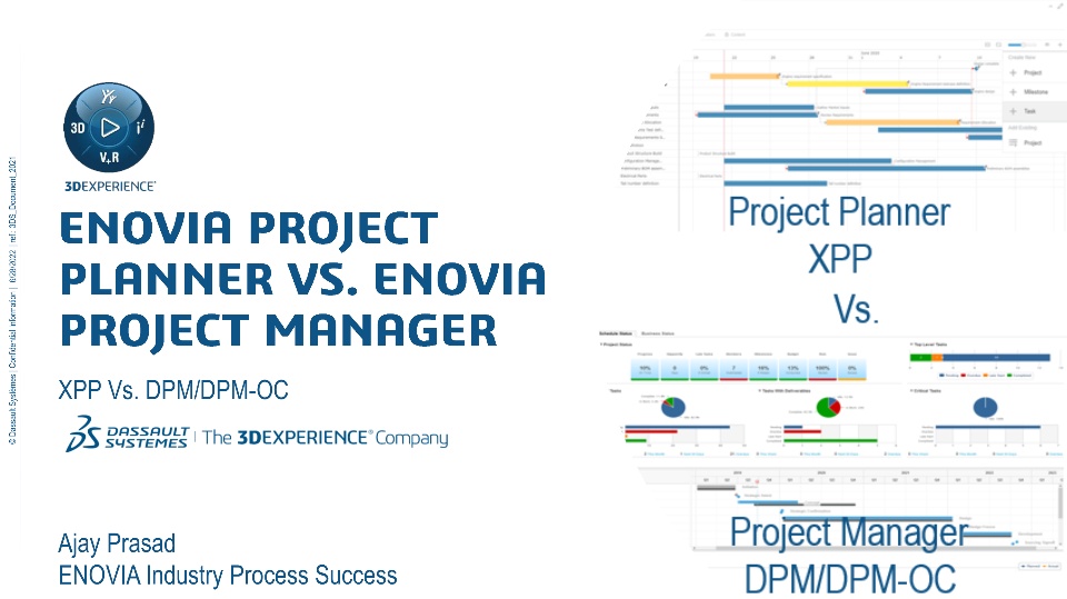 Two ENOVIA apps - ENOVIA Project Planner (XPP) and ENOVIA Project Manager(DPM) are often talked about in the project management space. While XPP is available only on cloud, DPM is available both on-premise and on-cloud.