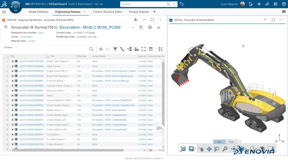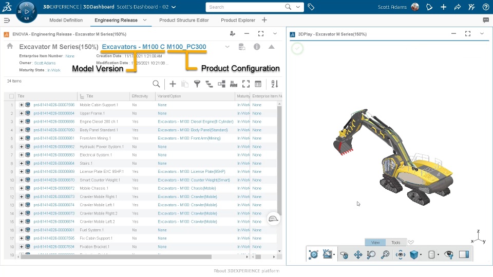 In the Engineering Release app, from the summary view of the configured structure, you can select and apply required Model Version and Product Configuration to filter the configured structure.