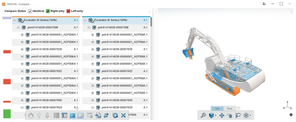 - Structural Comparison: Product structure differences are displayed on each object of the structure with a color code mentioned in the Compare Status bar.