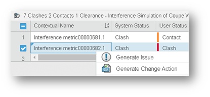 The app provides various tools to review, analyze and generate an “Issue” and “Change Action” directly from the “Interference Simulation” and/or from the “Interference metric(s)” that were generated from the 3DEXPERIENCE native client, using the “Interference Check” app.
