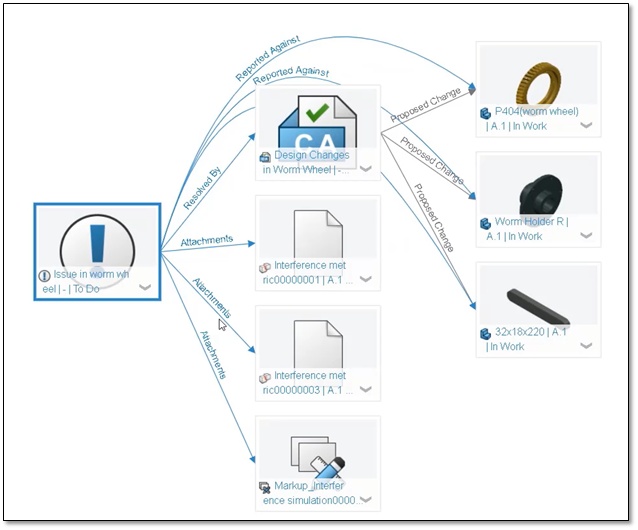 Note that when both Issues and Change Actions are generated from the same Interference metric, these two objects will be linked to each other as follows:
