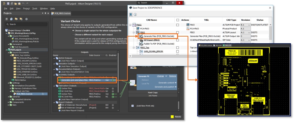 - Manufacturing outputs are saved as documents in 3DEXPERIENCE. The number of documents created are based on the number of output jobs configured in Altium Designer. Each output medium creates a dedicated document.