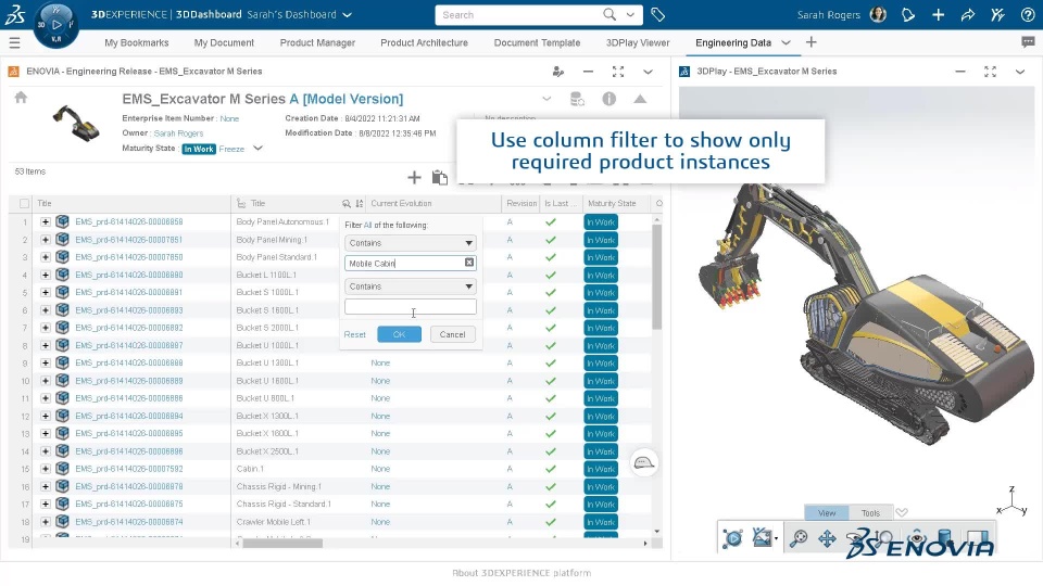 The Engineering Release app allows you to manage the complete engineering definition of products from early definition to final validation in collaboration with multiple disciplines across the value network.