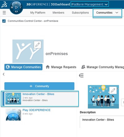 A community is a virtual place provided by 3DSwym app (Available in Collaborative Business Innovator role), where users can collaborate through posts, questions, ideas, surveys, wiki pages and WeDos.