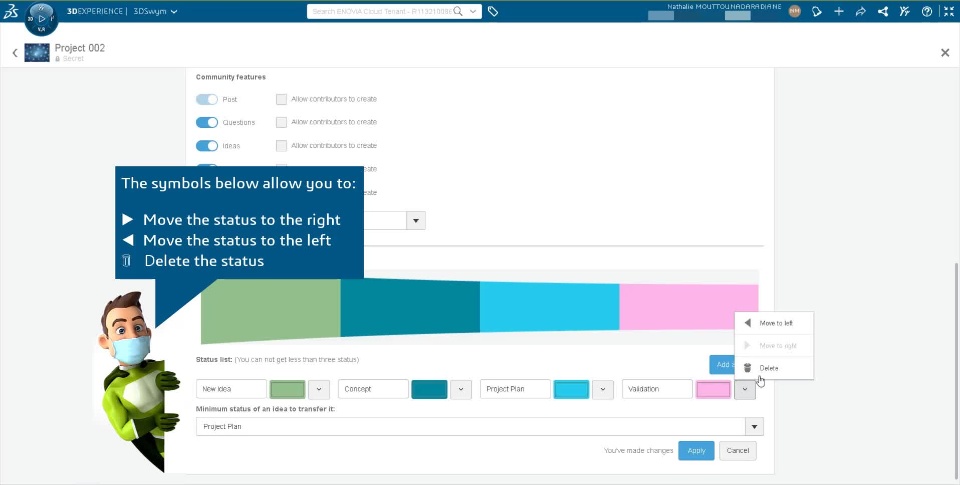 - Idea Status management: This section lets you see and customize the status used to classify the ideas of your community. You must be owner of the community.