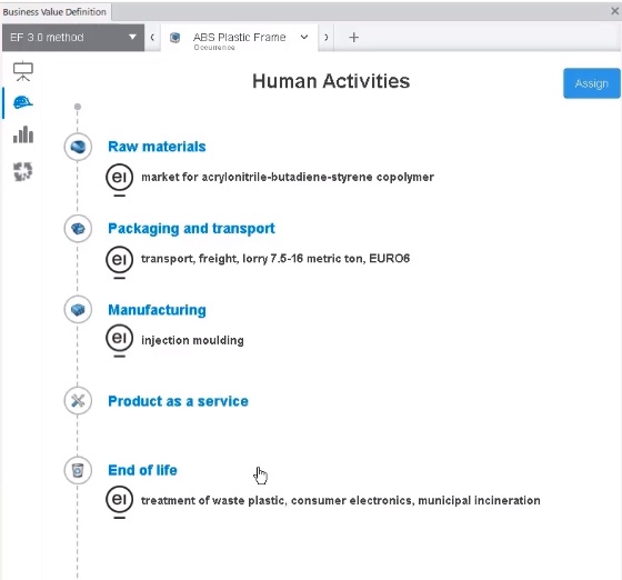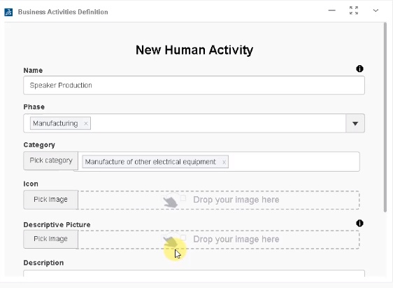 Along with the 18000 activities already available in the ecoinvent database, you can create your own custom human activities as required. The Business Activities Definition app allows you to create custom human activities affecting environmental footprint. These activities can be assigned to the product or its part. These activities are also helpful to enrich the database and can be used for future projects.