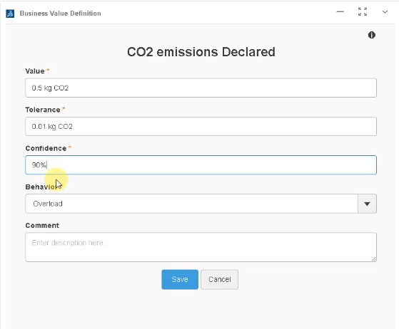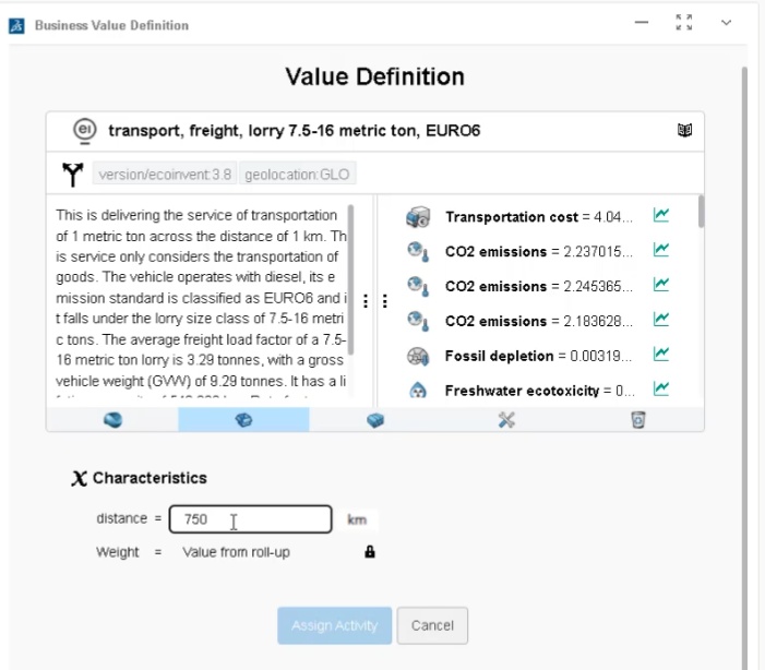 Most often standard parts like fasteners are procured from the supplier. Supplier may have already performed life cycle assessment of these parts and you can reuse this assessment by declaring values of the environmental metrics (For example: CO2 emission) in the Business Value Definition app.