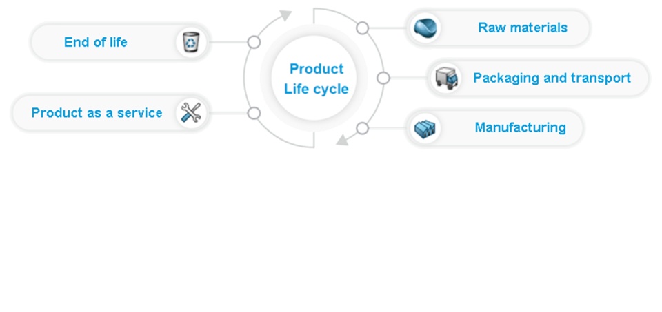 - Product lifecycle (From design to release, from raw material extraction to recycling)