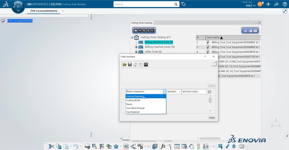Further in the video, I also show how the users can leverage the classification of tools directly in the cutting tool builder app in DELMIA. It’s the same concept.. search the catalog, apply the needed attribute filter, and once the correct tool is identified, just insert it into the PPR context in the session.