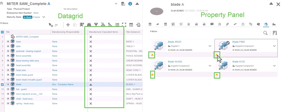 To enable this, you need to add a new column titled “Manufacturer Equivalent Items (MEI)” to the DataGrid view. This column will indicate the global qualification status of the Manufacturer Equivalent Items linked to the respective Engineering Item.