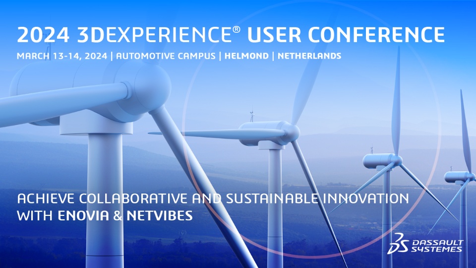 Get excited! Our global ENOVIA & NETVIBES user conference, the 2024 3DEXPERIENCE User Conference, will take place March 13-14, 2024 at the Automotive Campus in Helmond, Netherlands, located in the middle of the Brainport Region. The Campus is a national and international hotspot, meeting point and place of business for cross-sector cooperation, knowledge sharing and open innovation.