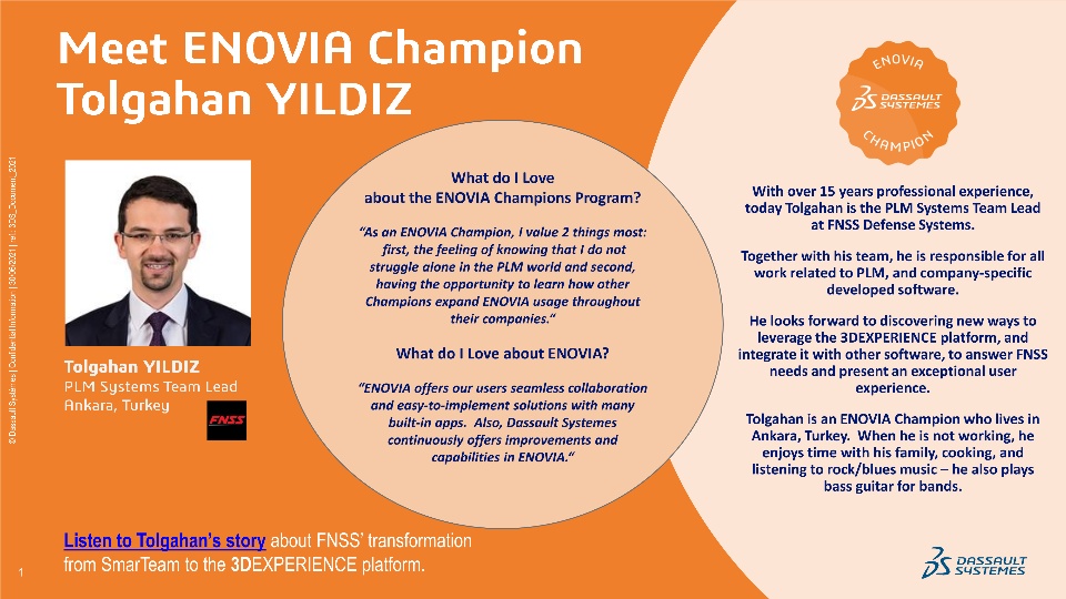 @LA and I had the honor of interviewing Tolgahan and today, we are pleased to share his #WErENOVIA 'Meet a Champion" interview with you. Please take a few minutes to learn more about his journey with ENOVIA by watching the video below: