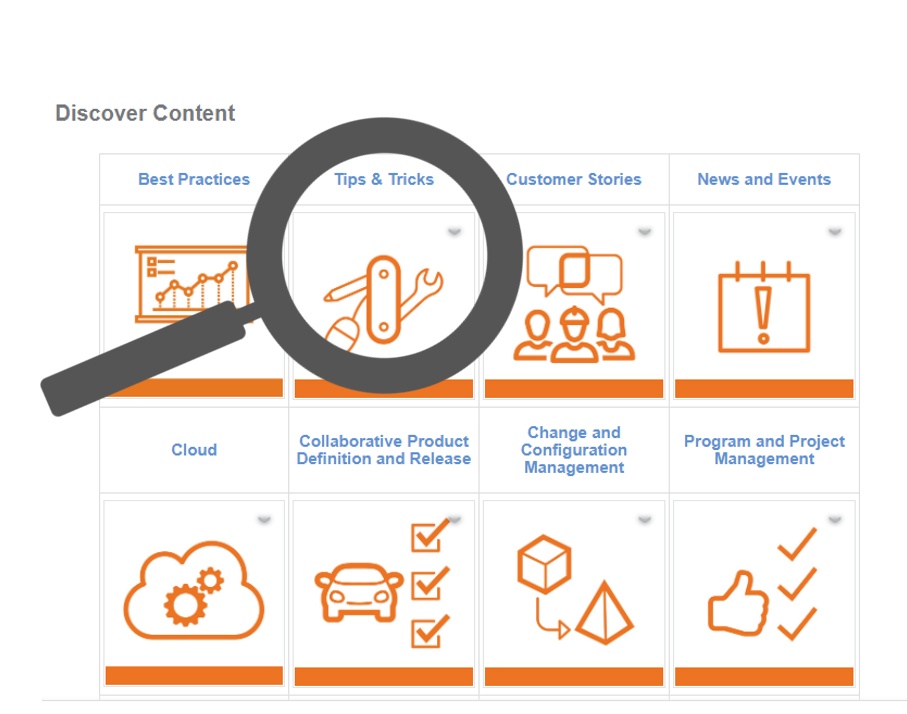 1) While browsing the ENOVIA Wiki Page, I decide to select the Tips and Tricks category by either clicking on either the picture icon or the text heading.