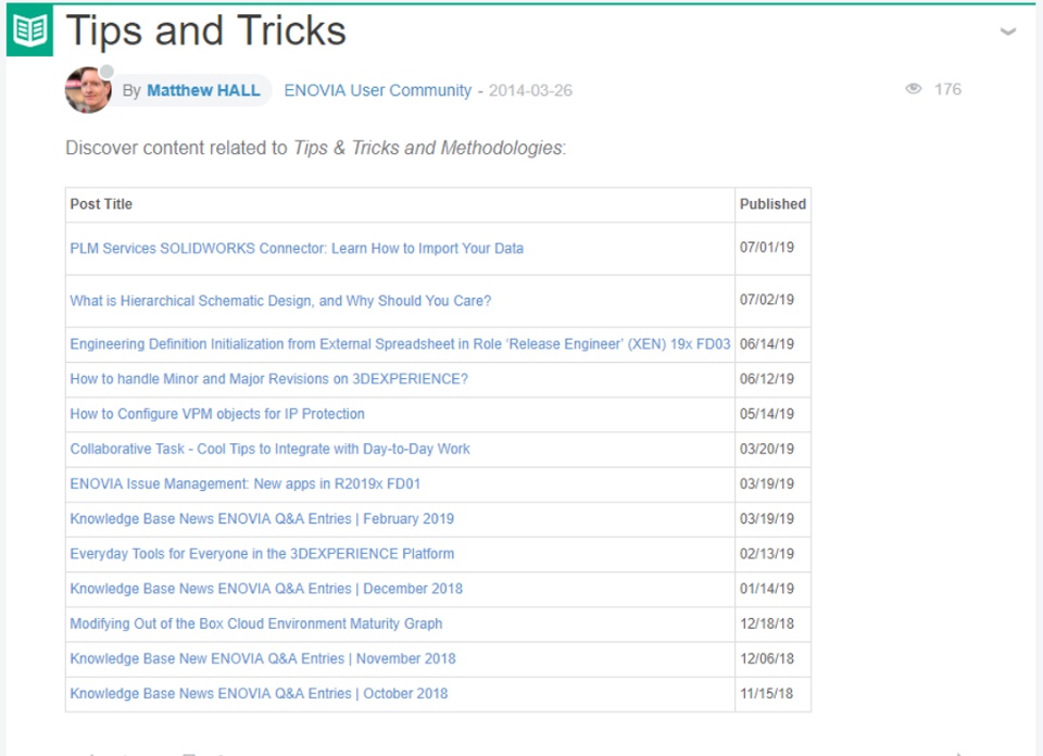 2) That leads me to an organized list of blog posts related to ENOVIA tips & tricks and methodologies. One can view the blog post titles in order by their publication dates.