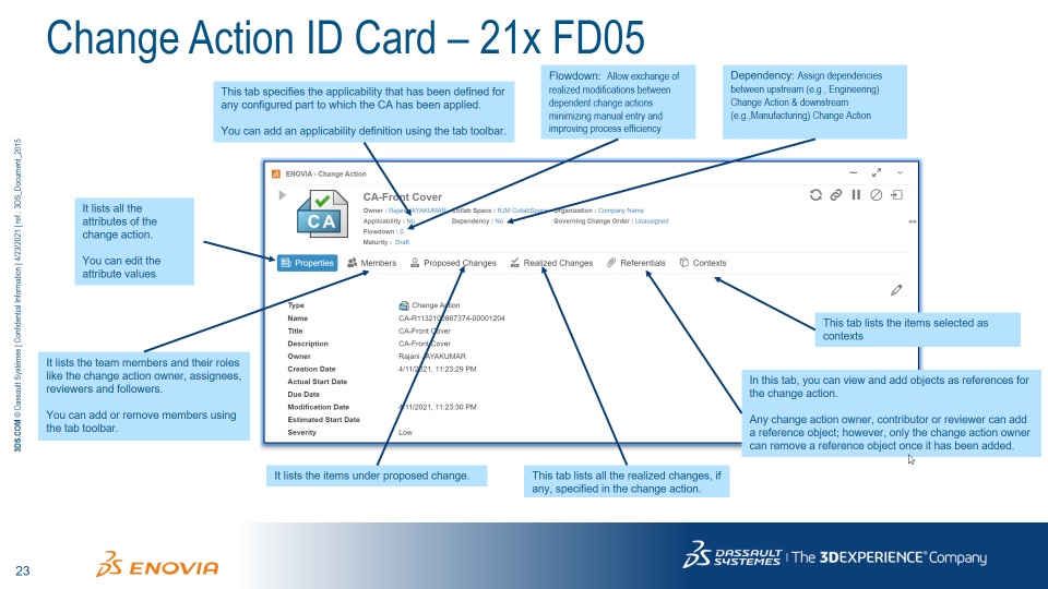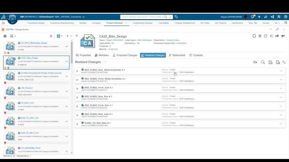 We have an enhancement in R2021x FD05 to create a dependency from engineering change to manufacturing change using Flowdown Dependency. In the video below, the engineering and manufacturing assemblies are modified using the stand-alone CA process and the new Flowdown Dependency mechanism.