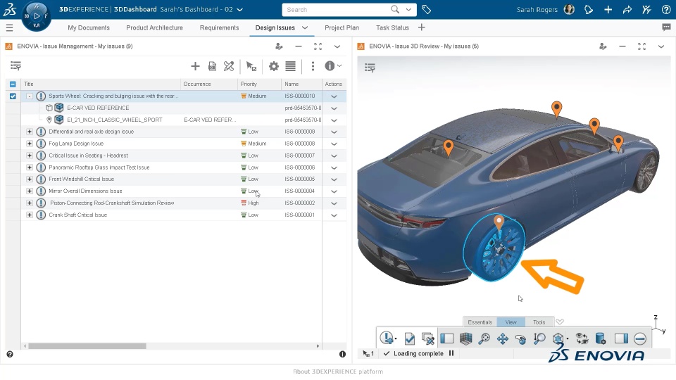- When you select the issue from your list of issues, the affected instance is highlighted in the Issue 3D Review app.
