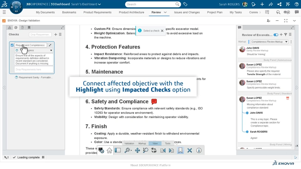 Reviewing product requirements to ensure its correctness is critical for an efficient product development process. In this section, we will see how you can use the Design Validation and Design Review apps to conduct a collaborative review process with the complete traceability, identify issues and communicate it to the Requirement Engineer, and trace the issue until its resolution.