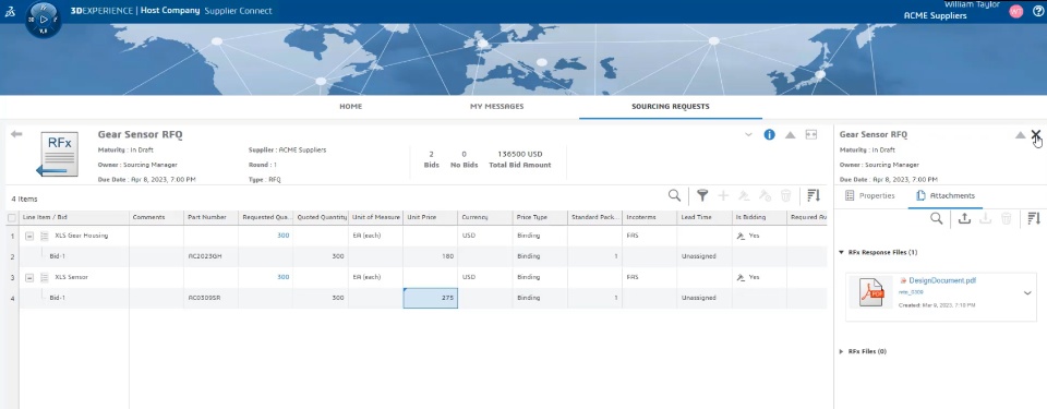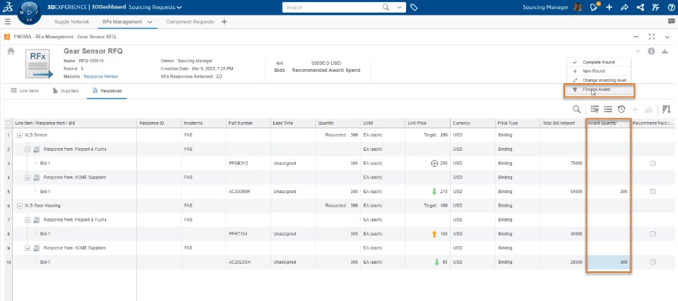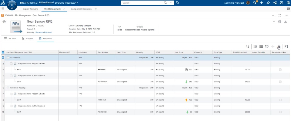 The RFx Manager role enables Sourcing Managers to negotiate with Suppliers the cost for Sourced Items, directly in the 3DEXPERIENCE Platform.