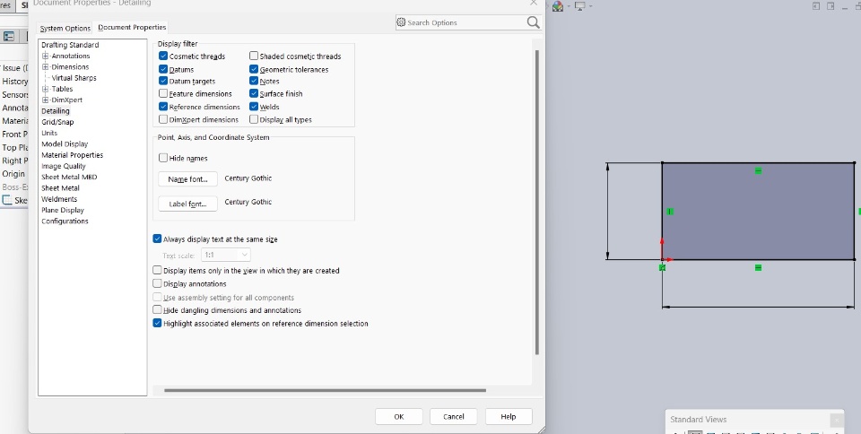Another issue is that the dimensions on the sketch are too small. I tried following some suggestions I found online, but I could not get the problem fixed.